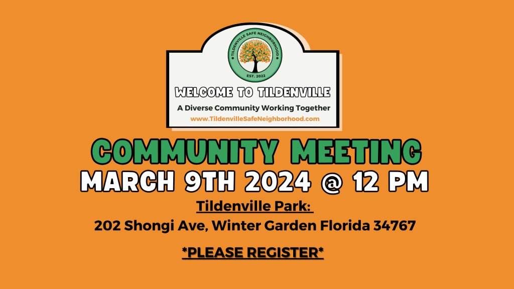 Join the leaders of the Tildenville Safe Neighborhood program and fellow residents of the Tildenville Community for our Quarterly Community meeting!